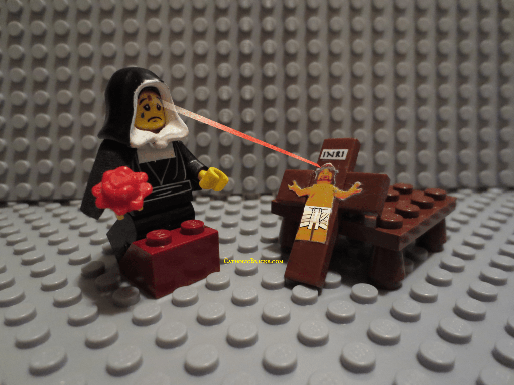 After the death of her husband and sons, she entered the convent. She had a great devotion to the Passion of Christ, meditating on it frequently. One day, she asked Jesus to let her participate in his suffering. At this, a thorn from His crown pierced her forehead, making a wound that would not heal for the last fifteen years of her life and which caused her great suffering.